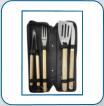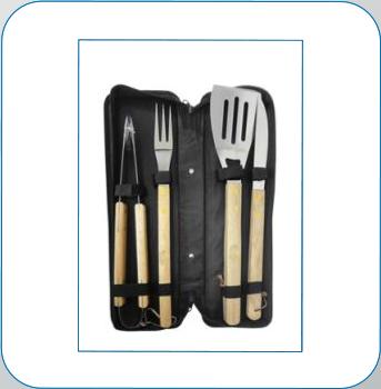 kit Churrasco 4 peças com cabo de madeira,