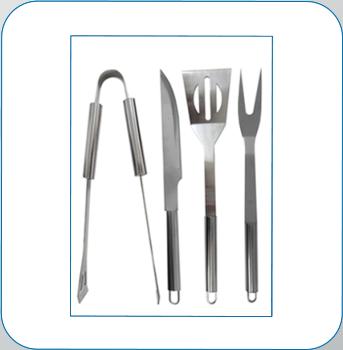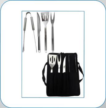 kit Churrasco com 4 peças de aço Inox, estojo de Nylon preto.